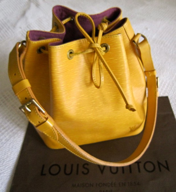 Last year, I bought two Prada bags, a lux tote gray and the other a black wallet on a chain. Both are beautiful and incredibly practical. However, I have been itching to get something bright and fun. Nothing under $1000 intrigued me except something that I consider an old faithful.To me the most iconic bags in the LV lineup are the Alma, the Speedy and the Noe. I had been eyeing a colored epi petite Noe. I took the plunge and purchased it. I can’t wait to rock it to work and on the weekends. It was either green or yellow. I found a perfect deal on the yellow so I purchased it! What are your favorite iconic bags?
